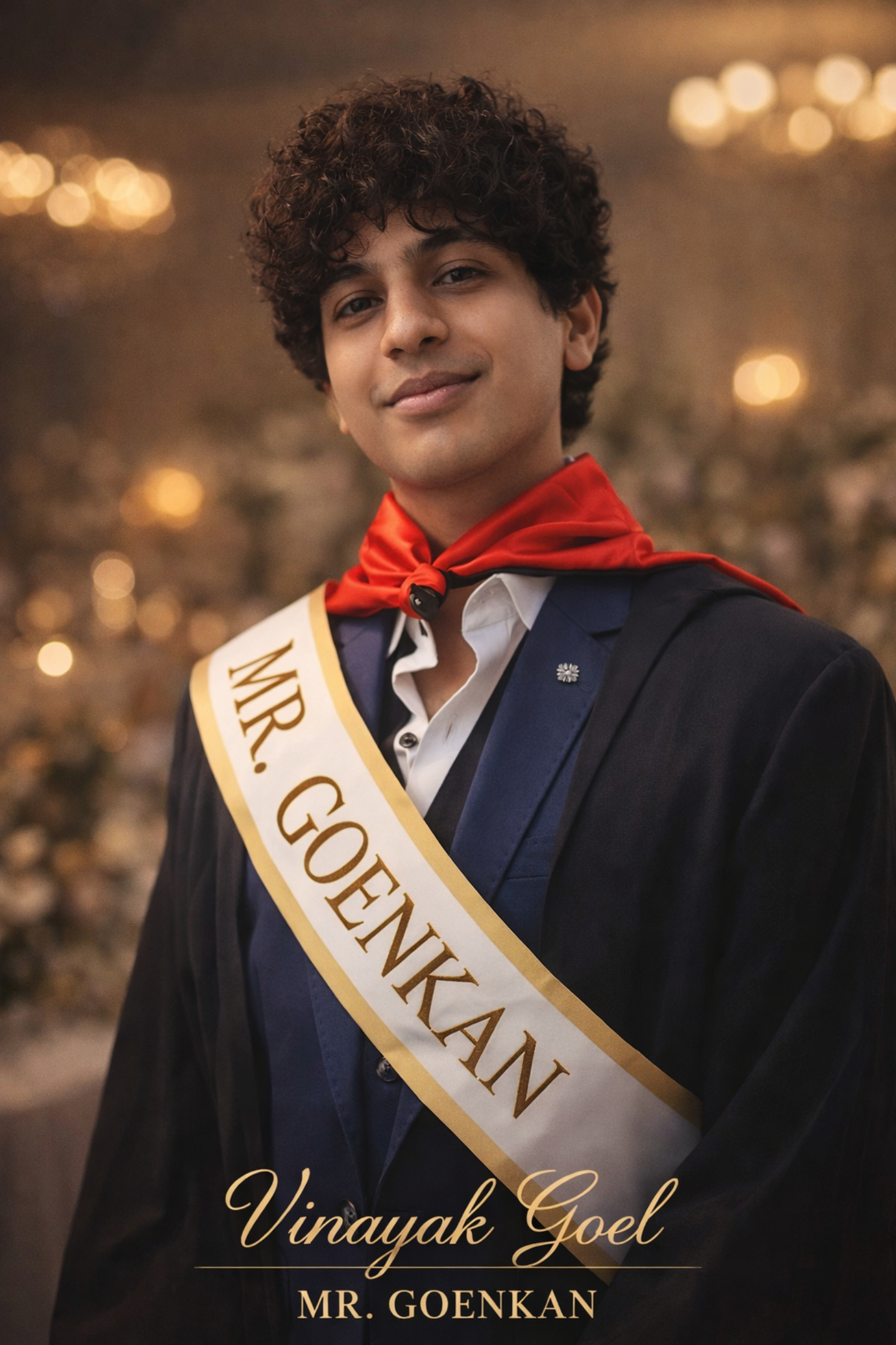 Vinayak Goel has proudly earned the title of Mr. Goenkan, reflecting his confidence, charisma, and outstanding personality. With a perfect blend of style, leadership, and grace, he stood out among his peers, representing excellence both on and off the stage. His achievement is a testament to his dedication, self-belief, and the spirit of true Goenkan pride.His journey to this achievement reflects dedication, discipline, and a relentless pursuit of excellence. Vinayak embodies the true spirit of a Goenkan—dynamic, forward-thinking, and grounded in values.