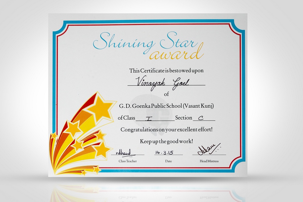 award: award for proficiency in spelling, shining star award