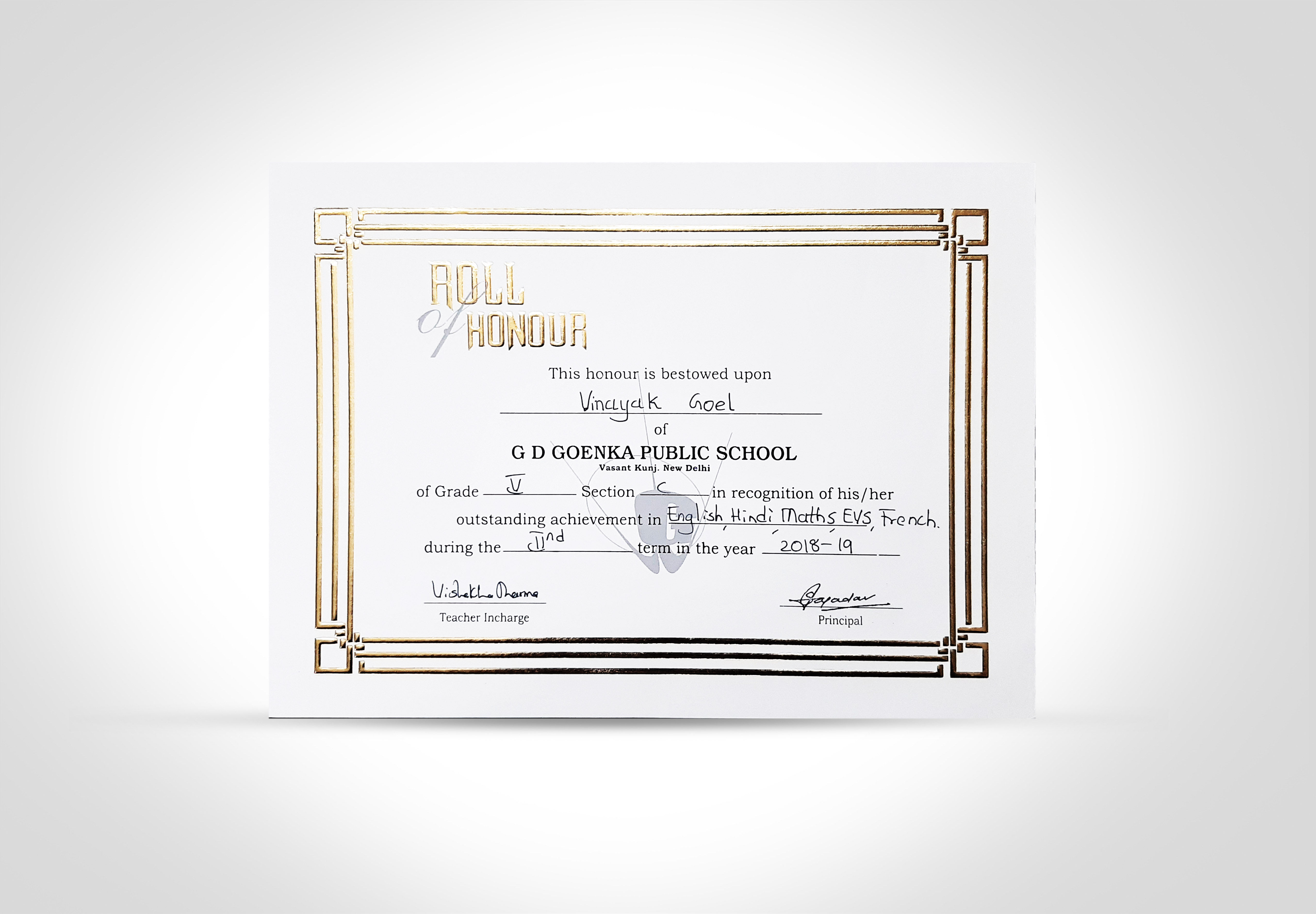award: inter school english literary fest, quiz competition