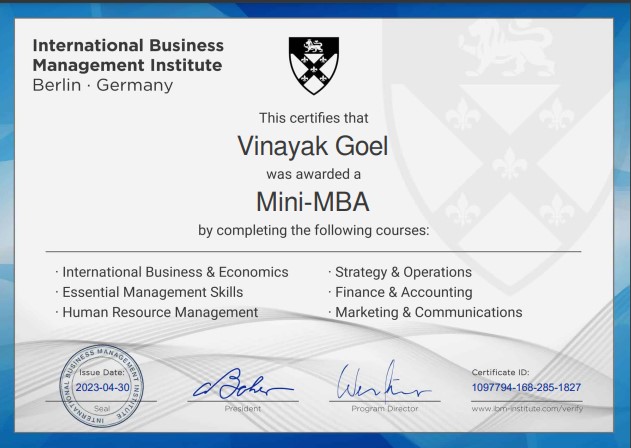 Mini MBA By International Business Management Institute(Berlin Germany)