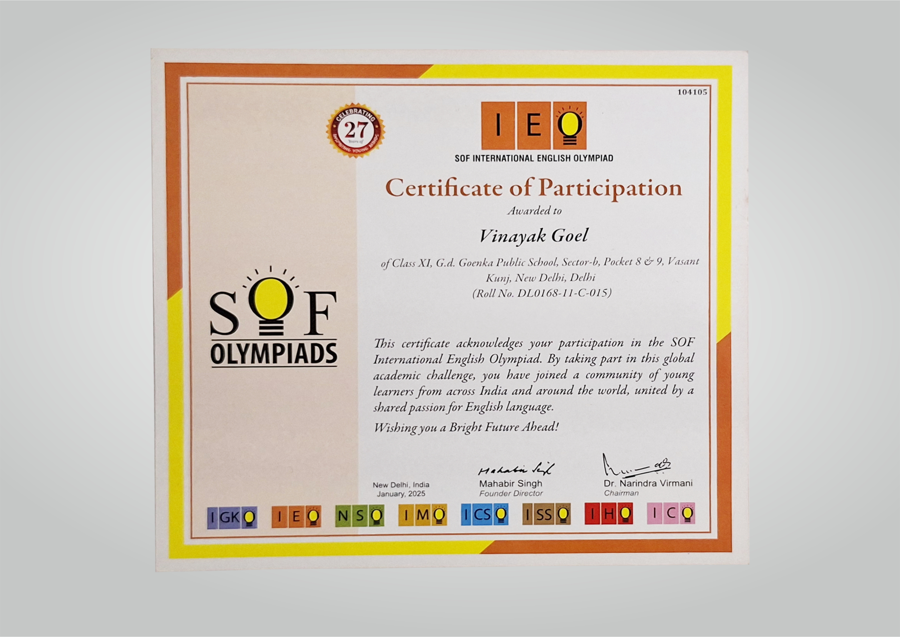 Vinayak' Accolades Section